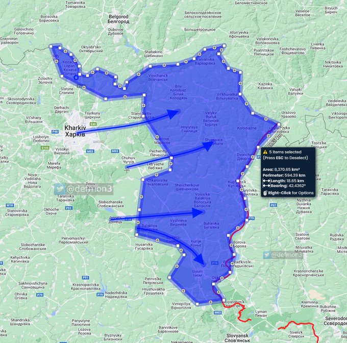 This could be wrong but what I'd seen was Russia pulling back behind the Oskil river is about 8,500 sq km now being liberated by Ukraine with no resistance: