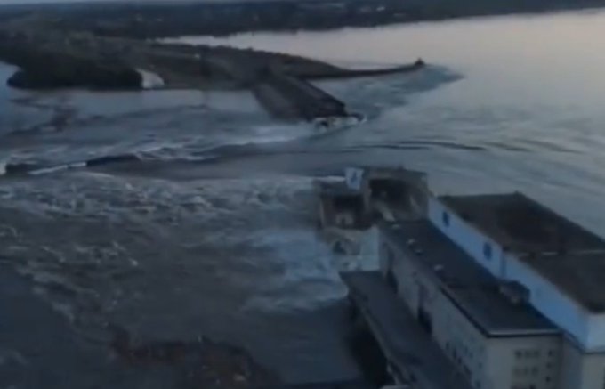Catastrophic detonation of the Nova Kakhovka dam. Huge sections of it gone, the reservoir is rapidly emptying into the Dnipro.
