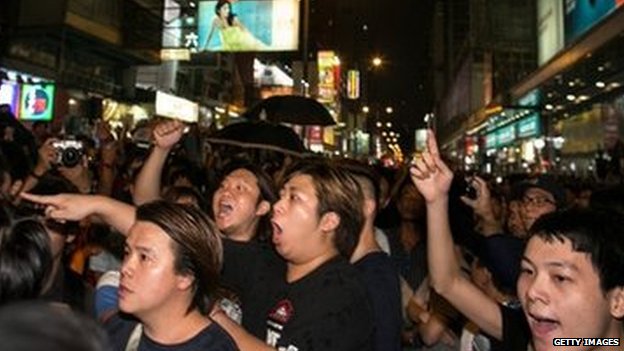 Apparently, the protestors are alleging the people attacking them are (at least in part) comprised of triad gang members.