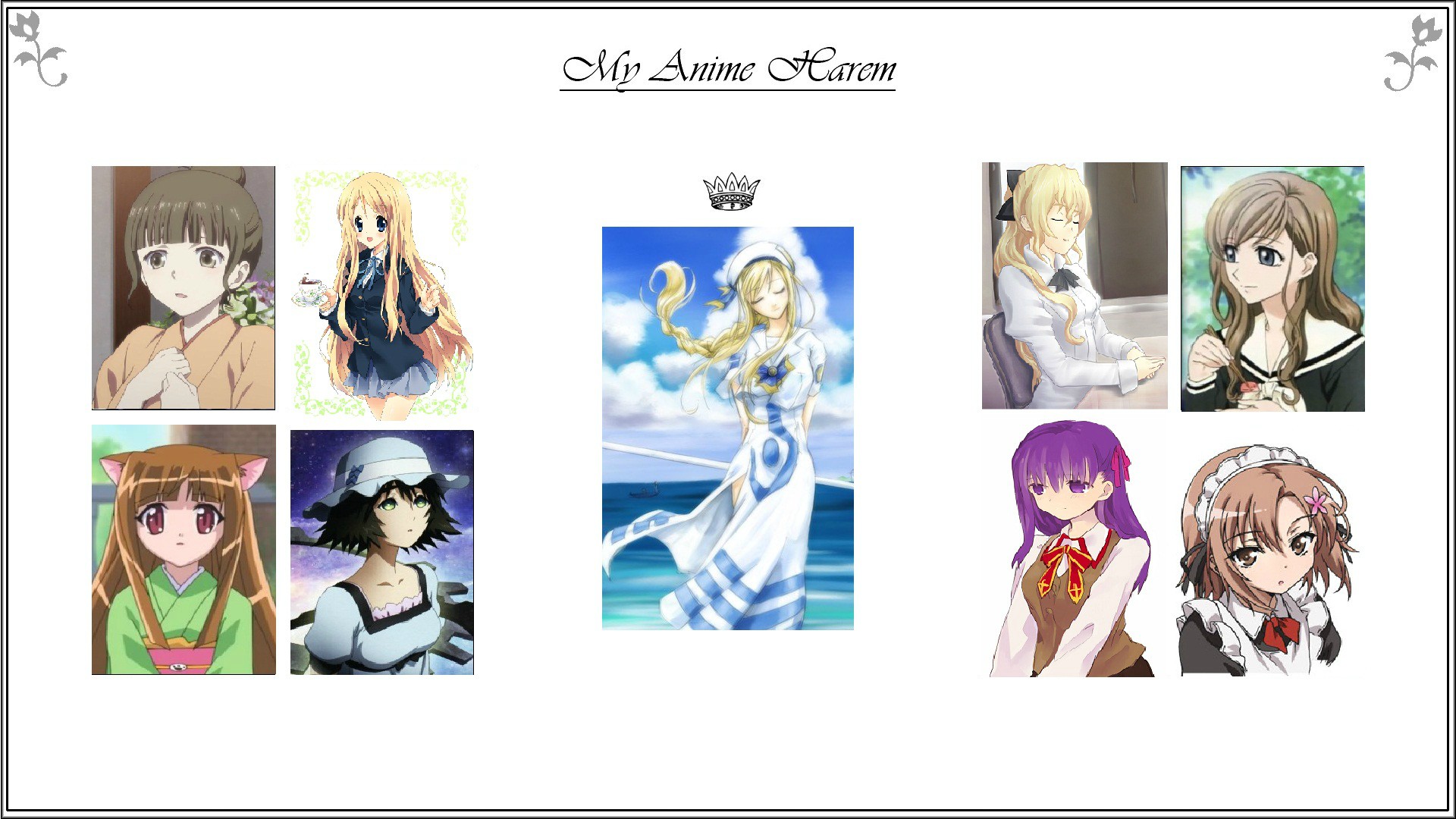 As promised. This should be good for an embarrassment I don't expect to live down- hopefully this will draw some of the schadenfreude from raz and allow the peanut gallery something at my expense instead, such that he can feel better by comparison. It also is a fairly comprehensive insight into what I find desirable. (My, but this took well over two hours to do! It was a pleasant passage of time.)