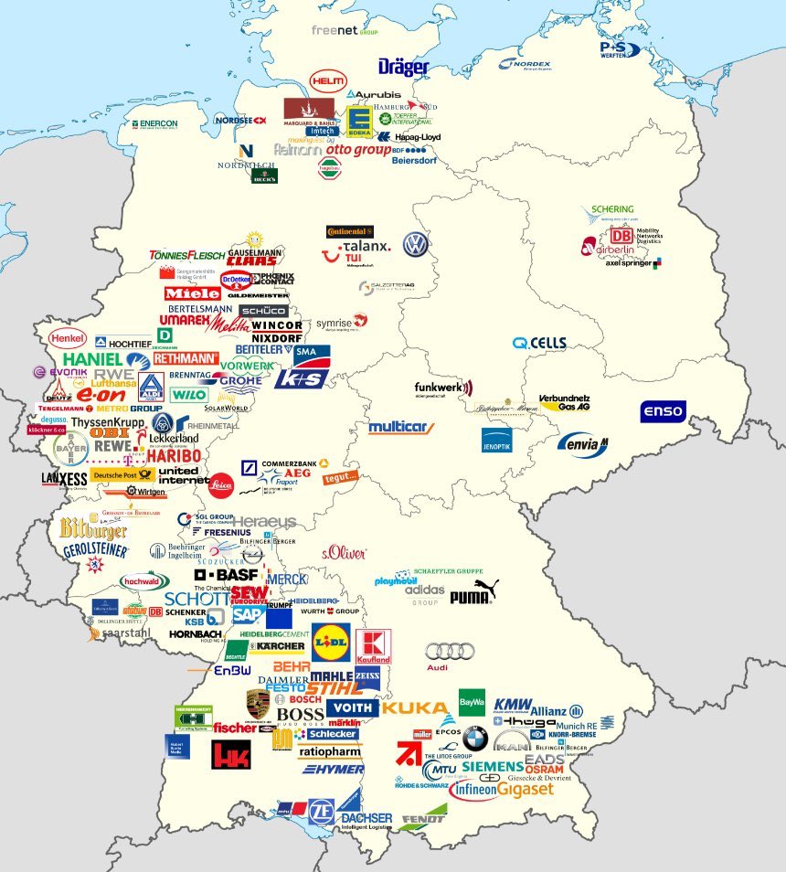 Map of where major German companies are headquartered.