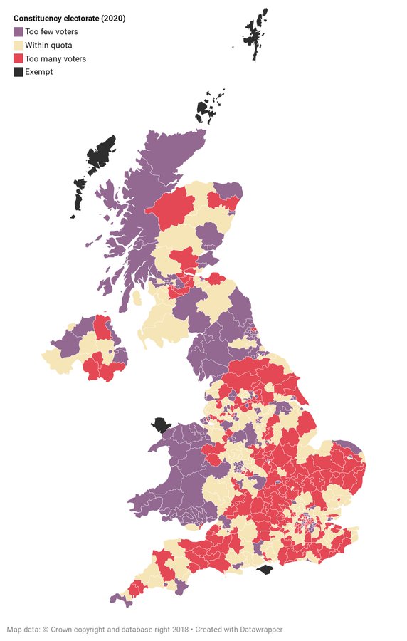 Edit: Also not seen this before and found it kind of interesting. It is time for the boundary changes to constituencies.  The Boundary Commissions haven't given their initial proposals yet but there is a map that shows where the constituencies are likely to need redrawing: