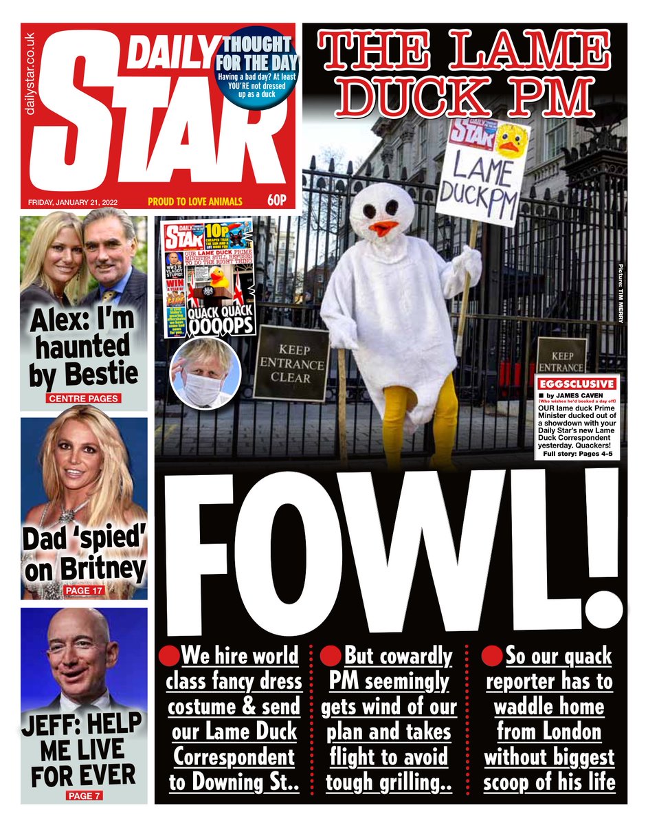 The Daily Star adding to the pantheon of tabloid journalists dressed as birds following politicians around: