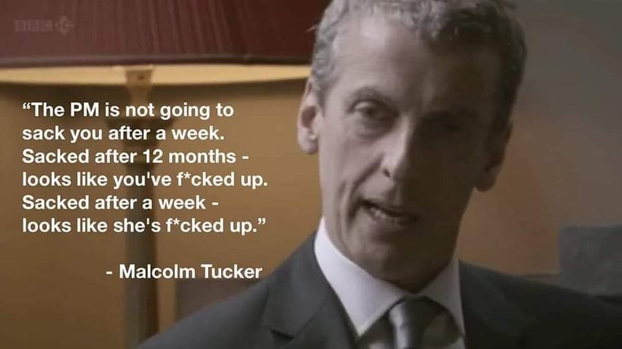 It is incredible to be so catastrophic that you have to resign after 44 days - not out of a sense of shame but because you've fucked up so much your internal party/parliamentary support has collapsed.
