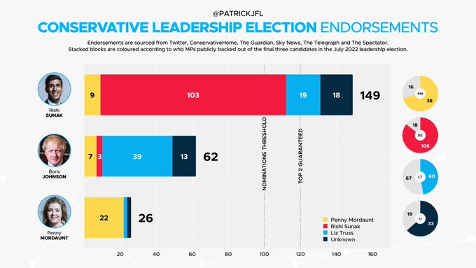 Apparently Mordaunt staying in the race can't see that she'll easily get to 100 - lots of strong Boris backers now following Zahawi and jumping to Sunak by the looks of it.