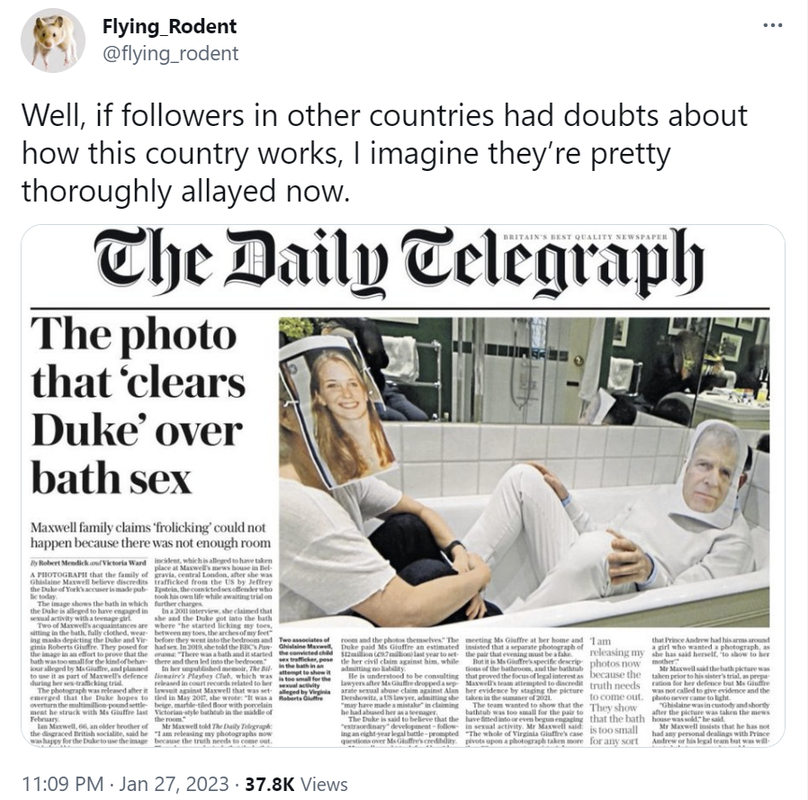 It's from Maxwell's lawyers - my only guess on why they'd pubilsh something like that is that someone senior at the Telegraph/the Barclays family is pretty heavily tied to Epstein/others implicated in the Epstein scandal (and worth remembering that Robert Maxwell was a British press baron).