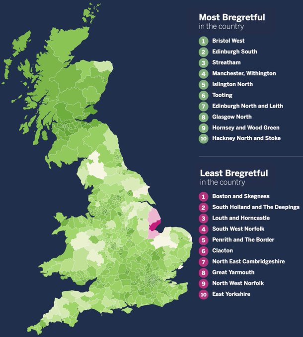 Really interesting big poll and analysis on Bregret. The map (only three constituencies are not at least plurality Bregretful and only one is still majority that it was the right decision):
