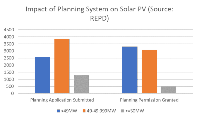 Because above 50MW you have to go through the Nationally Significant Infrastructure Planning process (which I believe was intended to simplify things for important projects but actually requires vast amonts of assessments etc).