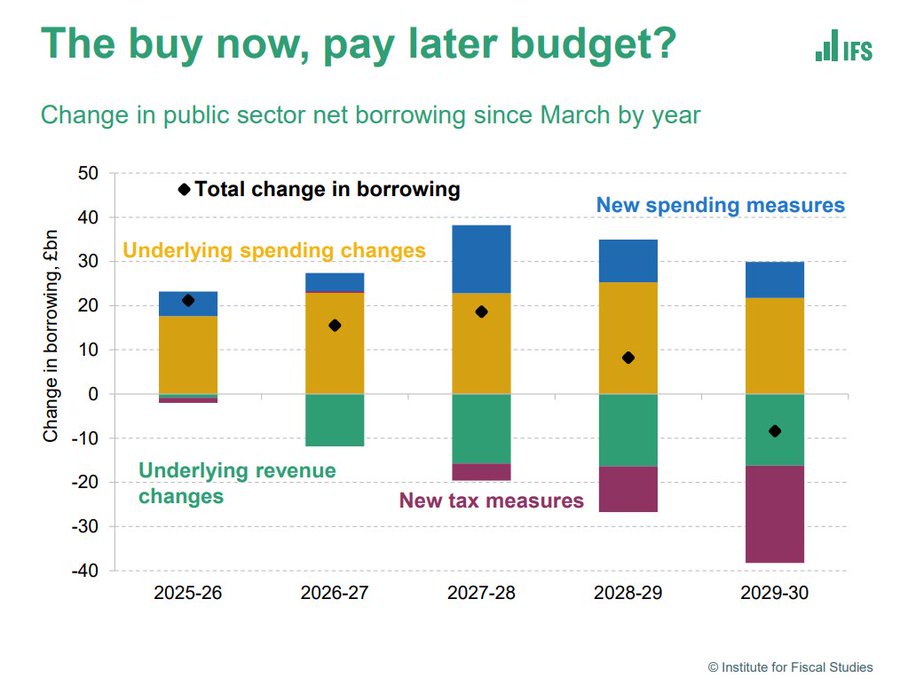 I also think (which is why I think the whole "fiscal rule"/headroom framing of policy is bullshit) that it's not really going to happen :lol: Most of new tax measures (not least because they're quite complex so will require design and implementation work) won't take effect until 2028. So spending will rise in the short term, while there will be long term revenue increases that will take force in *checks notes* an election year. That strikes me as basically quite unlikely: