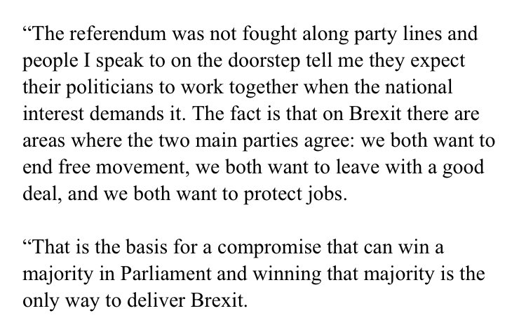 BREAKING: Theresa May outlines the basis of a Brexit deal with Labour after 3 days of talks: End free movement and protect jobs. No mention of a second referendum.