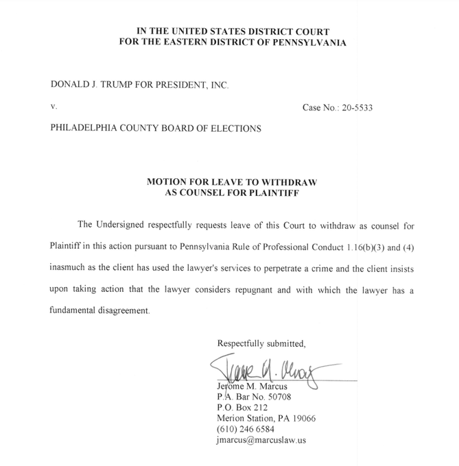 Of course it all varies jurisdiction to jurisdiction.  And Mr. Marcus here may well simply be counting on the fact that no state bar is going to fault him for harming Trump.  But it sure seems to me like a violation of his professional responsibilities.