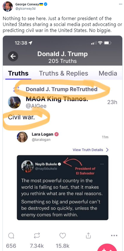 Quote from: The Larch on May 28, 2022, 09:52:31 AMTrump read the names of the victims of the Uvalde shooting, which was followed by a gong