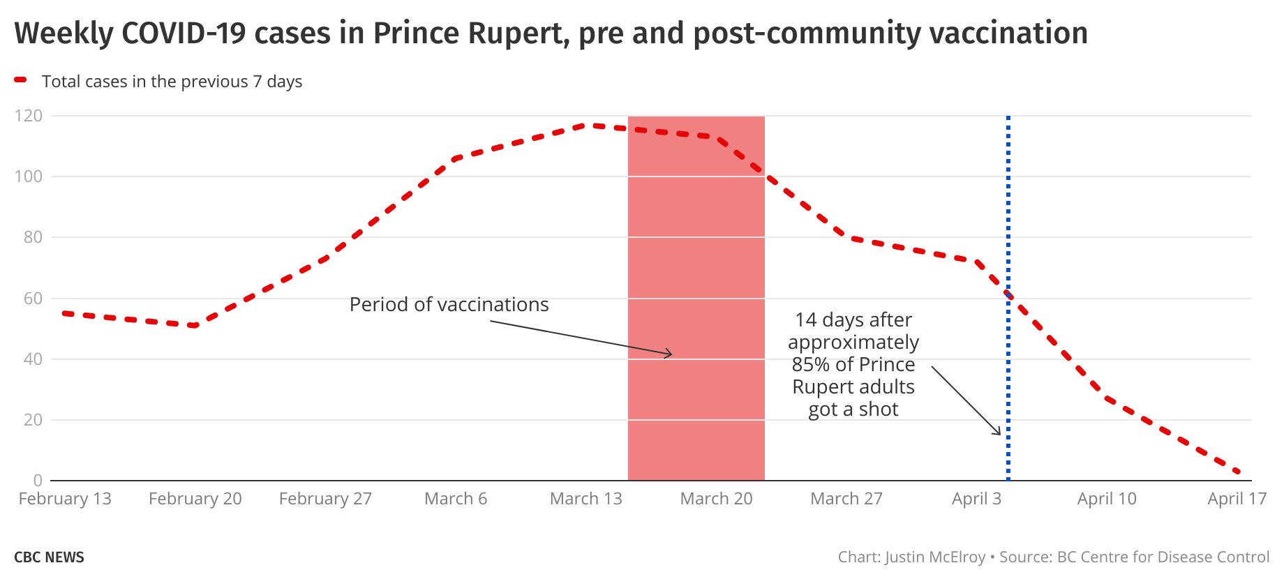 Here's a fun factoid.  The city of Prince Rupert, BC (pop 15,000) had a 2 week window where every adult was offered to be vaccinated.  It's a city in northern BC with no community of any size for 500km, so somewhat isolated.