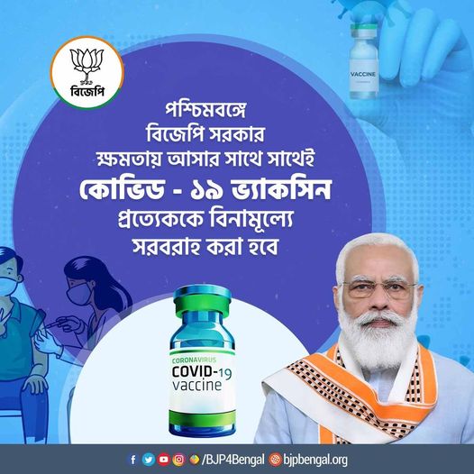 As soon as BJP government comes to power in West Bengal, COVID-19 vaccine will be provided free of cost to everyone.