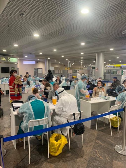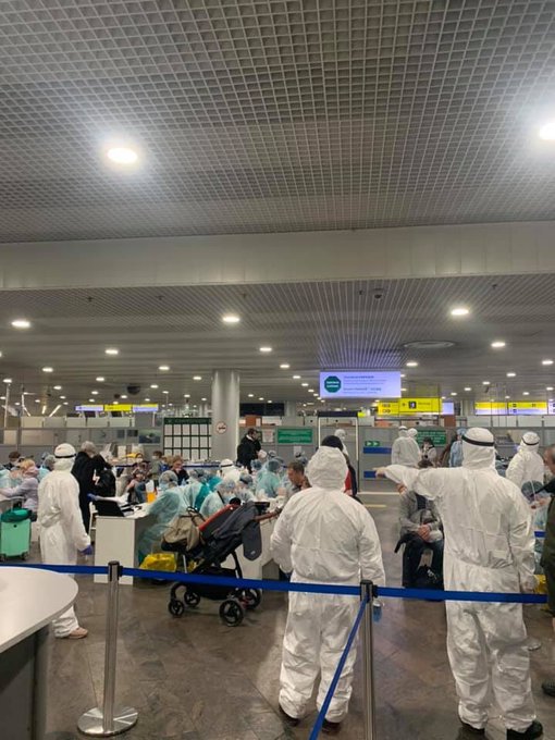 This is from Sheremetyevo airport in Moscow. All passengers getting off the plane get masks and temperature checks. :hmm: