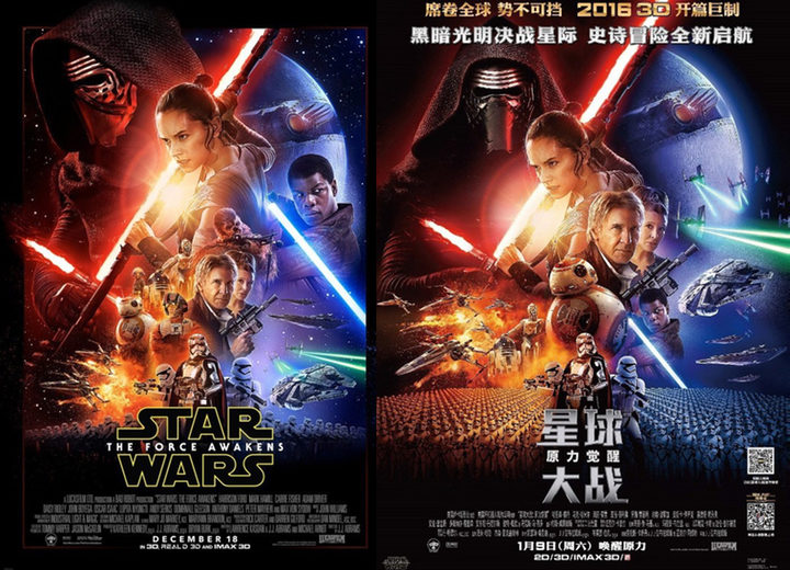 Wookiees and black people get shafted in the Chinese Star Wars poster.
