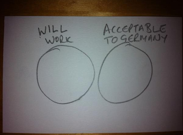 I can explain it. Sheilbh says a majority of eurozone countries are now in favor. I can tell you a good chunk of that list: Greece, Cyprus, Ireland, Portugal, Spain, Italy, and Belgium. That is 7 countries. 2 more and we have a majority. When you put a bunch of pieces of shit together, you don't get a wonderful bouquet of flowers, you just get a pile of shit.
