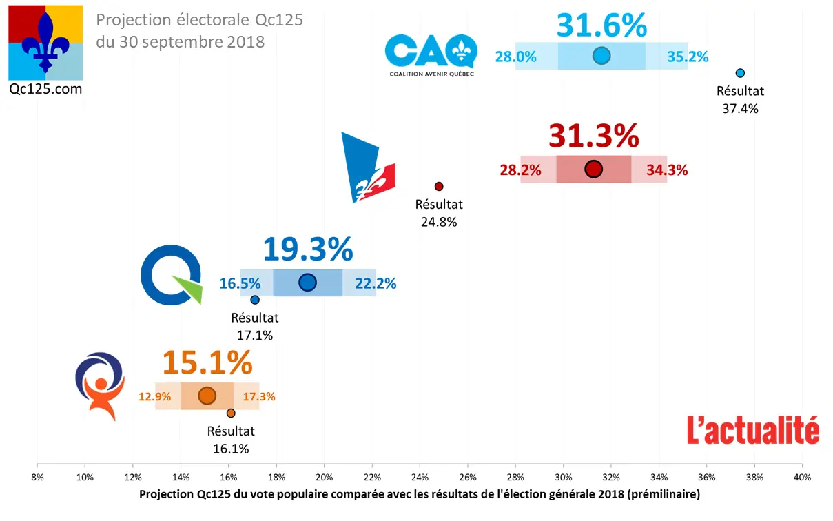 • Coallition Avenir Québec (center-left): 74 MNA (member of National Assembly), 37,41%
