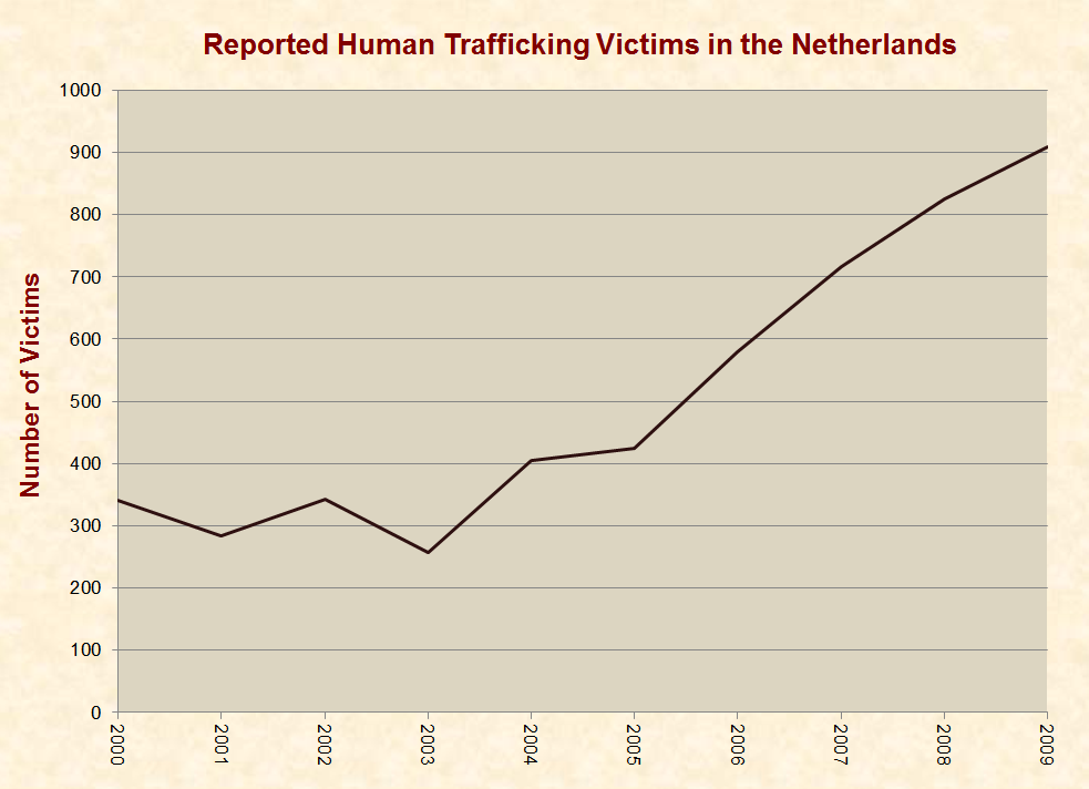 makes sense that the number of trafficked girls in netherlands has increased, but has the overall global trafficking of women increased? a quick google search shows the majority of these girls come from third world countries. these girls might normally have been trafficked, and their masters simply shipped them out to netherlands rather than new orleans, etc.