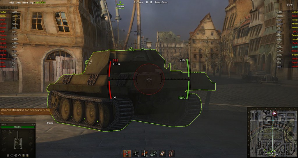 i dislkie that i'm red lol. I'm assuming the riticle goes green when you're aiming at a spot that you can pen like the defualt one?