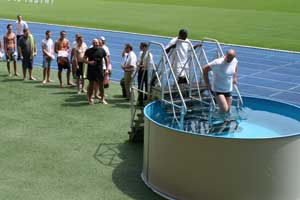 Could be worse. The Jehova's Witnesses have their annual meeting at Happel Stadium today and tomorrow - though there's a roof over the stands it heats up real nice. Must be real fun in suit and tie.  :D