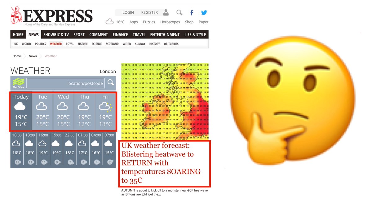 I'll be nicely warm, but not the 35C the Express et al are headlining.