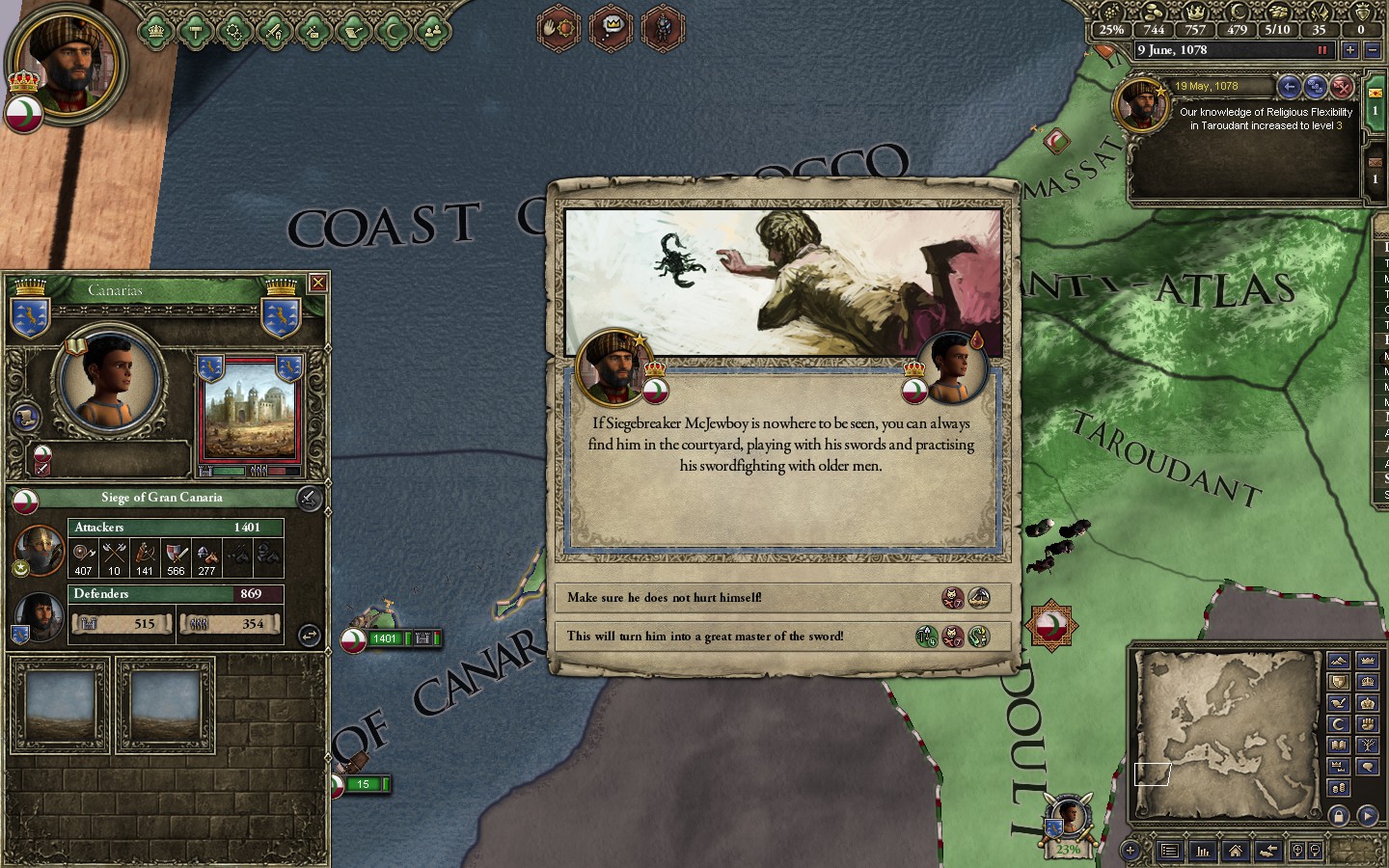 Before I left, young Prince Barack was KIA in a holy war for Navarra. But there were shitloads of Siegebreakers still running around.