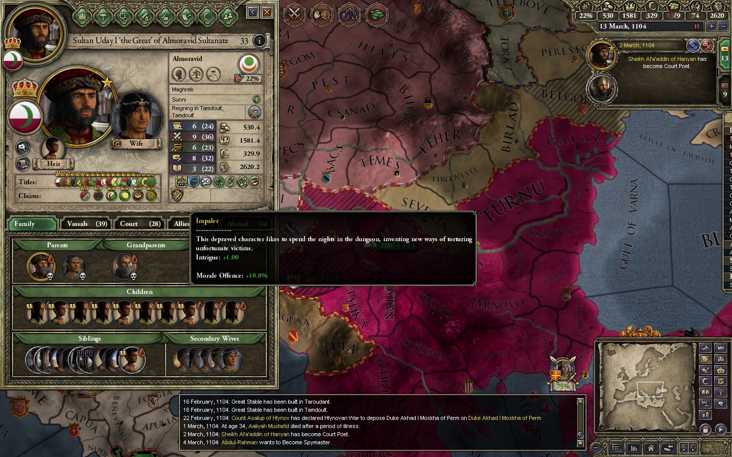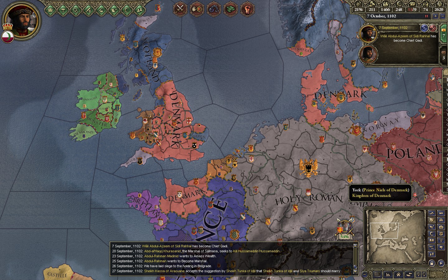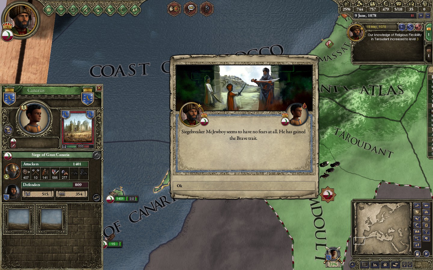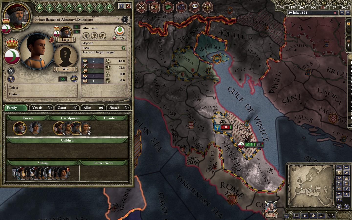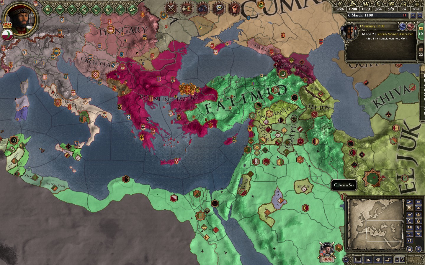 In support of a Fatimid attack on the Spellustards, I had a Merc company march across Spain,France, Italy and the balkans to attack the empire in the rear. Still silly as hell.