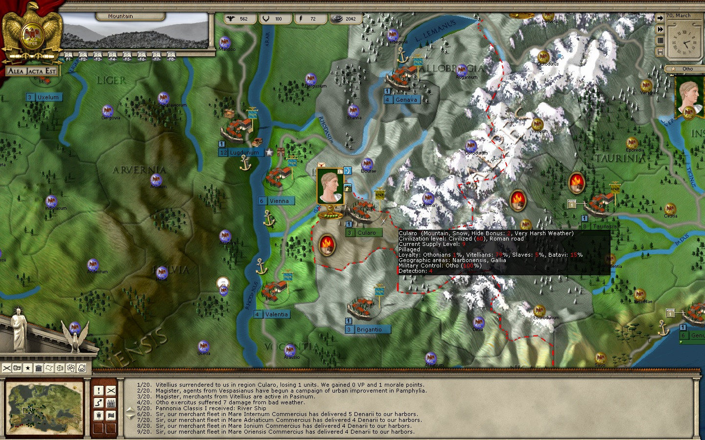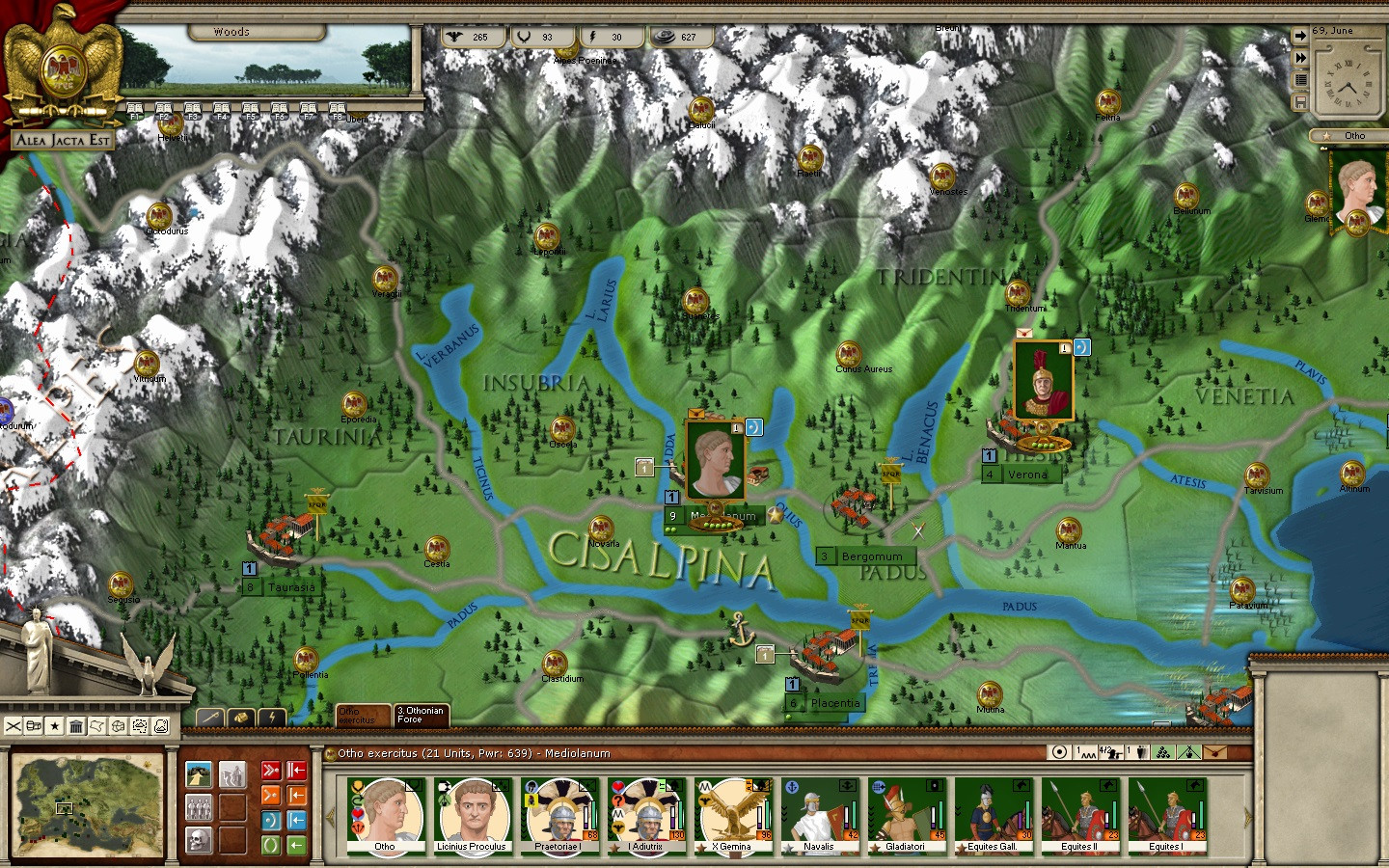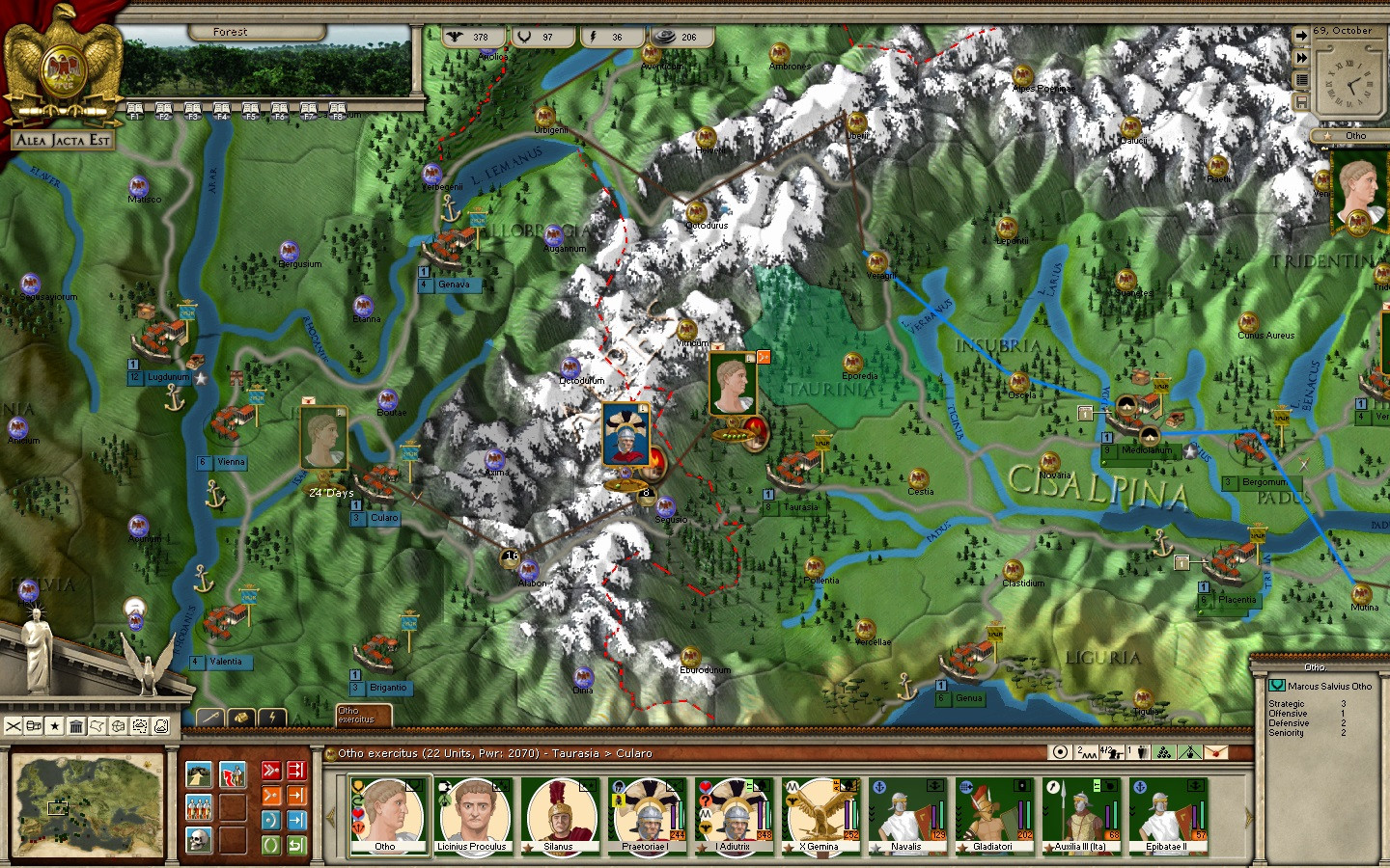 When the road opens back up over the Alps, I order Otho back to Cisalpine Gaul. The fucker marches on Massalia instead. What a maroon.