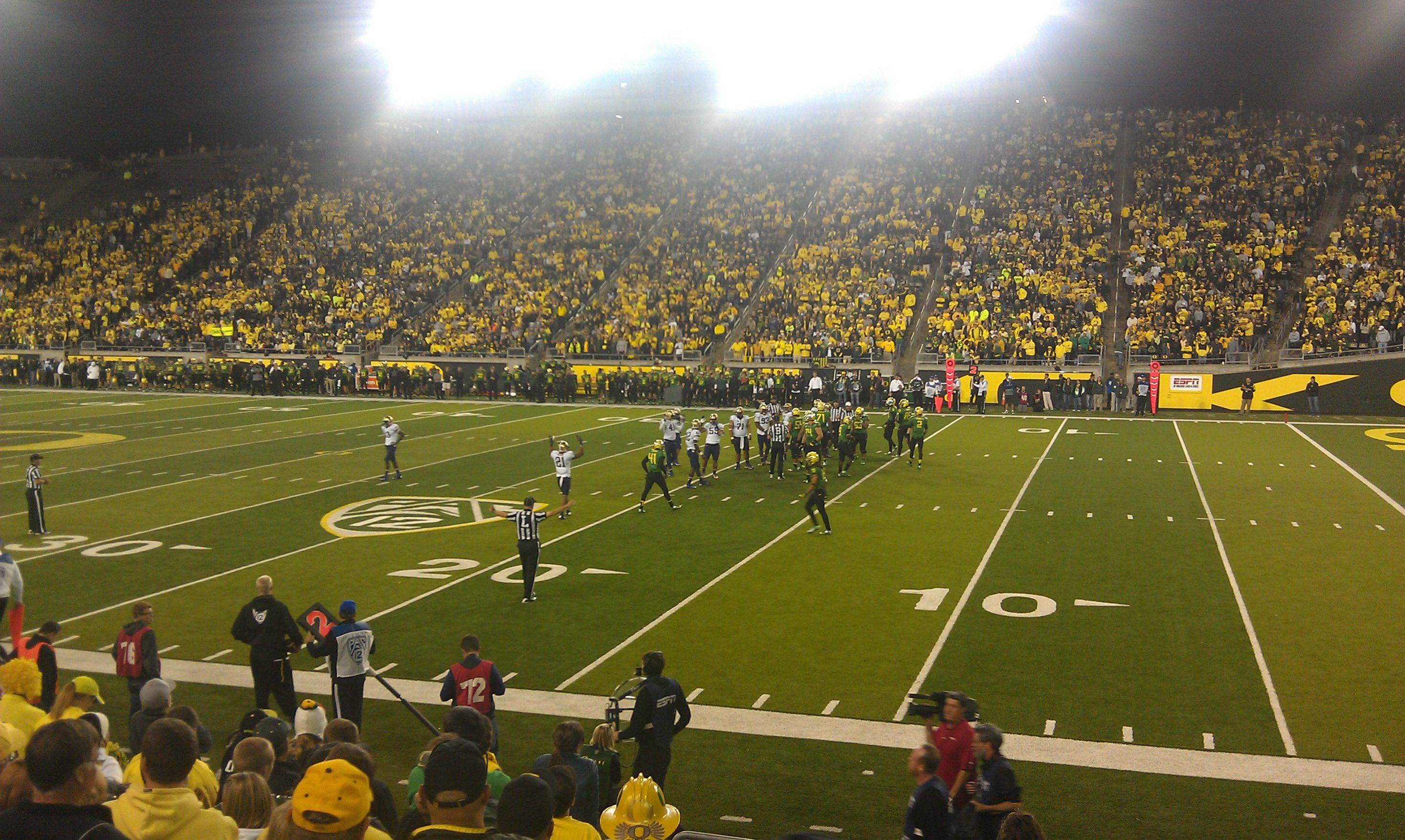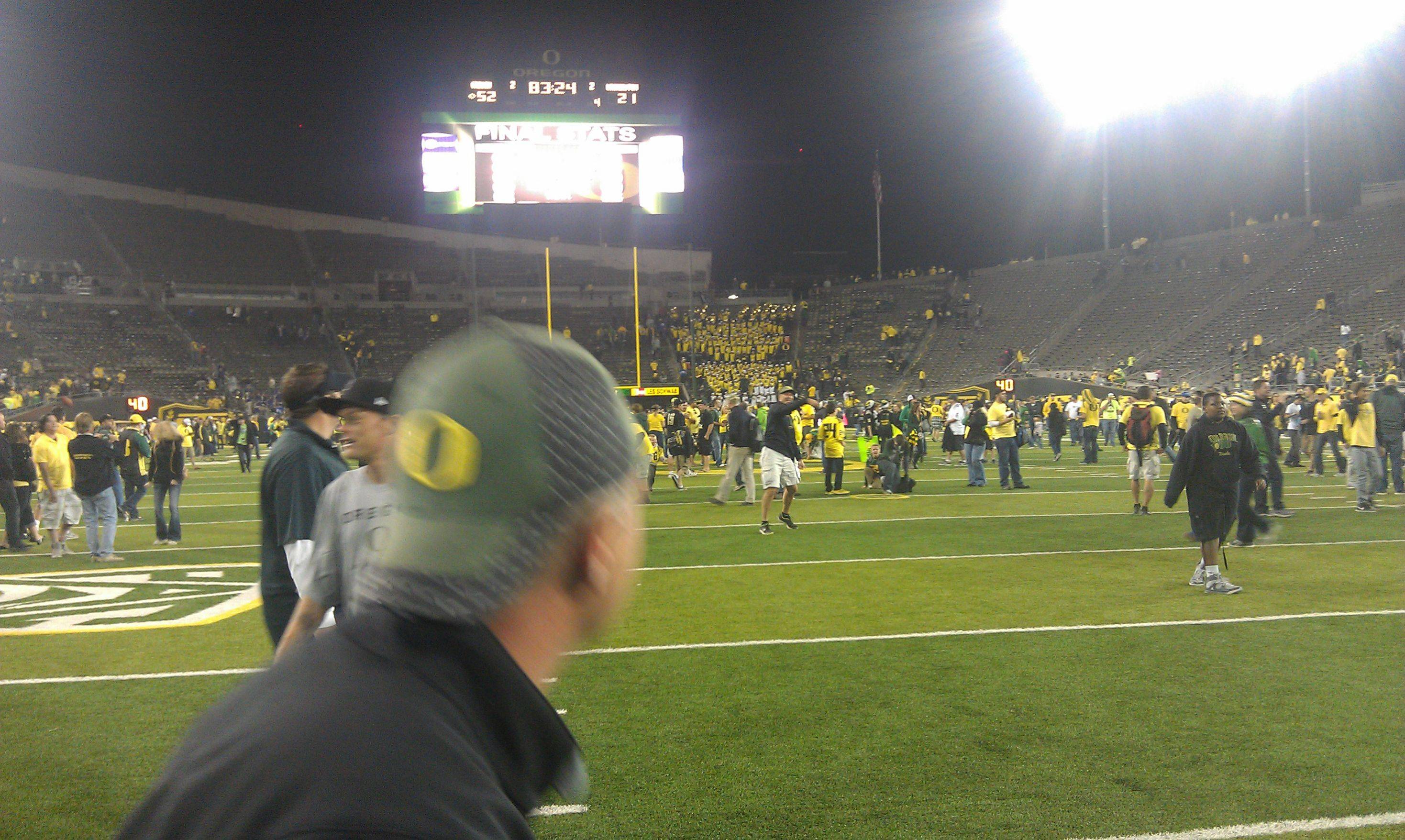 That was my first college football game since I was in college myself.  My friends have a great parking/tailgate spot just across the road from the main parking lot and a 5 minute walk to Autzen.  Drank and ate may too much before the game, yelled too much during the game, drank too much after the game again.  Shared a queen size bed with my buddy who got me the ticket.  There are rumors of attempted drunken snuggling I can neither confirm nor deny.  Woke up this morning and couldn't find my toothbrush and didn't have time for a shower.  Went out to breakfast in Eugene, and guess who's order the kitchen forgot to make?  I ended up getting my meal free. Then a 90 minute drive with 4 stinky, gassy, hungover guys in a king cab pickup to my car, where I found my toothbrush.