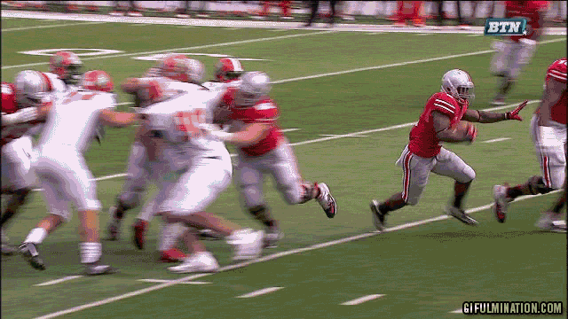The ump. got in the way of Hall in the open field. He was stiff armed by 2(Jordan hall) then ran over by the A&M kid. It was hilarious live.